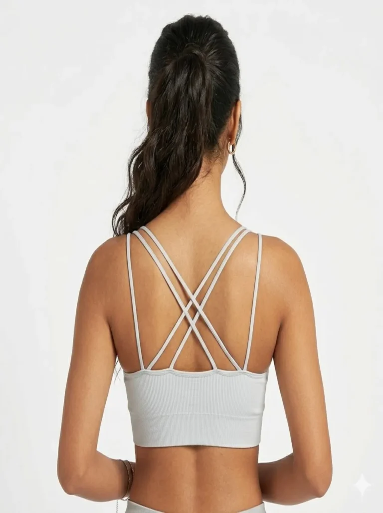 Seamless Ribbed Criss-Cross Back Sports Bra Size Small